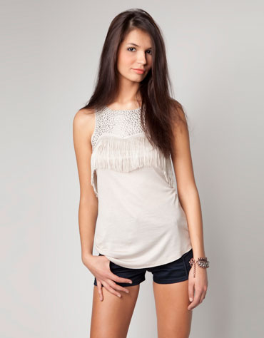 Camiseta de Bershka con flecos, 7,99 eur; bershka.com. Top de Zara, zara.com.